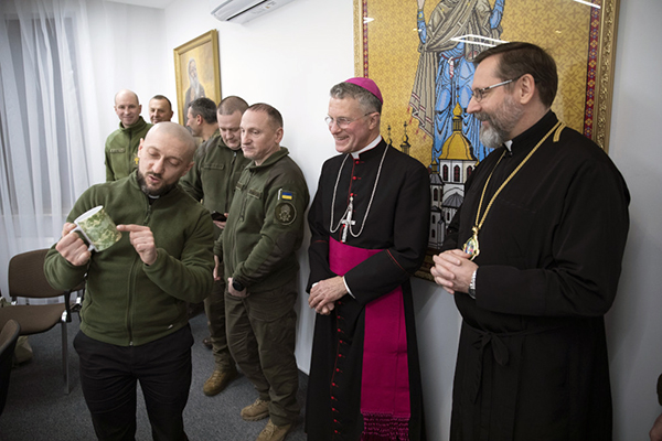 Archbishop Broglio encouraged the Ukrainians to stand firm. He expressed solidarity with their cause of freedom and determination to remain independent of outside aggression. “You may not see this in Ukraine,” His Excellency told Ukrainian officials, “but today Ukrainians bring great hope to the world! Your nation has united and stood up to this unjust invasion. In your resistance, we see hope for the future.”