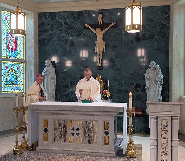 WASHINGTON, D.C. — It’s official: the Archdiocese for the Military Services, USA (AMS), has a new Vicar General and Moderator of the Curia. On Thursday, July 1, 2021, Monsignor Jeffrey G. Laible of the Diocese of Peoria, IL, made the requisite Profession of Faith and Oath of Fidelity as he assumes the new role. He succeeds Monsignor John J.M. Foster, J.C.D., who is returning to his home Diocese of Stockton, CA, to serve as pastor of the Cathedral of the Annunciation following eight years of productive service to the AMS.