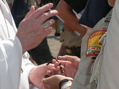 Pope Saint John Paul II wrote in his Apostolic Letter Rosarium Virginis Mariae, “The Rosary, though clearly Marian in character, is at heart a Christocentric prayer. In the sobriety of its elements, it has all the depth of the Gospel message in its entirety, of which it can be said to be a compendium. It is an echo of the prayer of Mary, her perennial Magnificat for the work of the redemptive Incarnation which began in her virginal womb. With the Rosary, the Christian people sits at the school of Mary and is led to contemplate the beauty on the face of Christ and to experience the depths of his love. Through the Rosary the faithful receive abundant grace, as though from the very hands of the Mother of the Redeemer.”