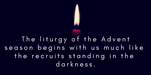 The change in these recruits is in many ways similar to the change we celebrate each Advent. The liturgy of Advent season begins with us much like the recruits standing in the darkness. The readings speak of a world that is desperately in need of a Savior. We listen to the words of the prophet Isaiah filled with anticipation for the one who will deliver us from a world of confusion, war and, the darkness of sin.